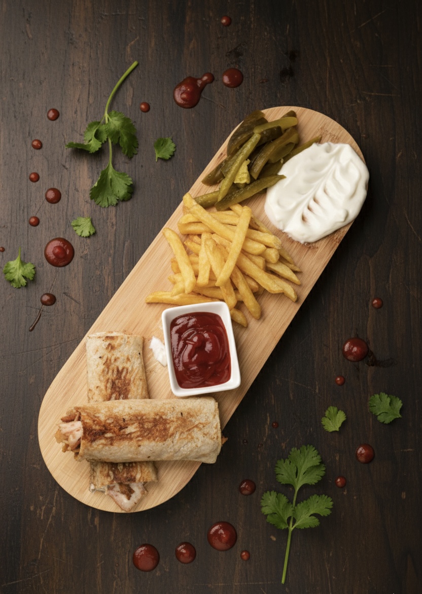 garlic,chilli sauce,pickles,fries
